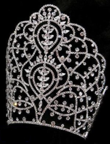 Set on high quality platinum metal, festooned with over 1000 imported crystals, the tiara measures an entrancing 10 inches high by 7 inches wide on an expandable headband.