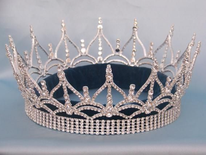 Handcrafted with the finest imported clear faceted crystals and mounted on silver tone metal, the crown measures 7 inches in diameter by 4 inches in height.