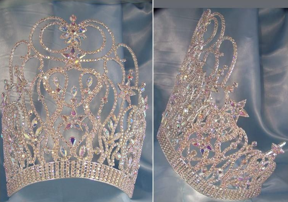 Stunning and show stopping! This 'over the top' headpiece, crafted with beautifully faceted, brilliant Aurora Borealis stones is a spectacle to behold.