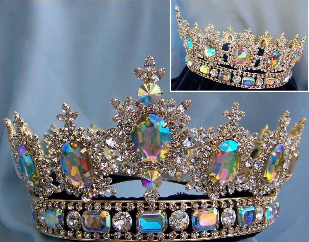 Crafted by hand by our dedicated team of international jewelers, the fully round crown is a brilliant spectacle of clear, faceted Austrian crystals, enhanced with beautiful aurora borealis stones.