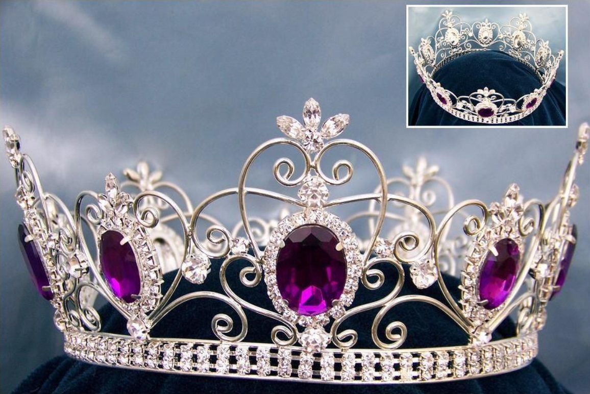 Features accents of faux amethyst stones for contrast, set on silver tone metal. Ideal as a bridal crown or for use in a beauty pageant.